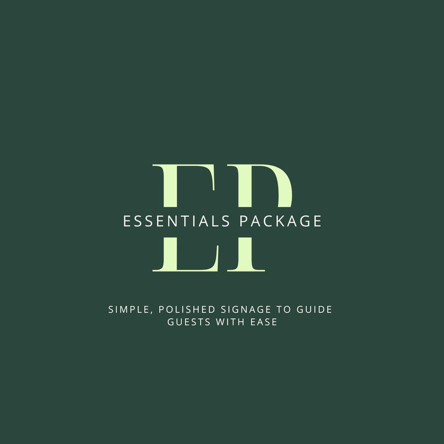 The Essentials Package is designed for couples who appreciate clean design and thoughtful simplicity. Featuring beautifully crafted signage that welcomes guests and guides them seamlessly through your celebration, this package delivers understated elegance without excess. Every piece is curated to feel intentional, ensuring your wedding looks polished, cohesive, and stress-free from the moment guests arrive.